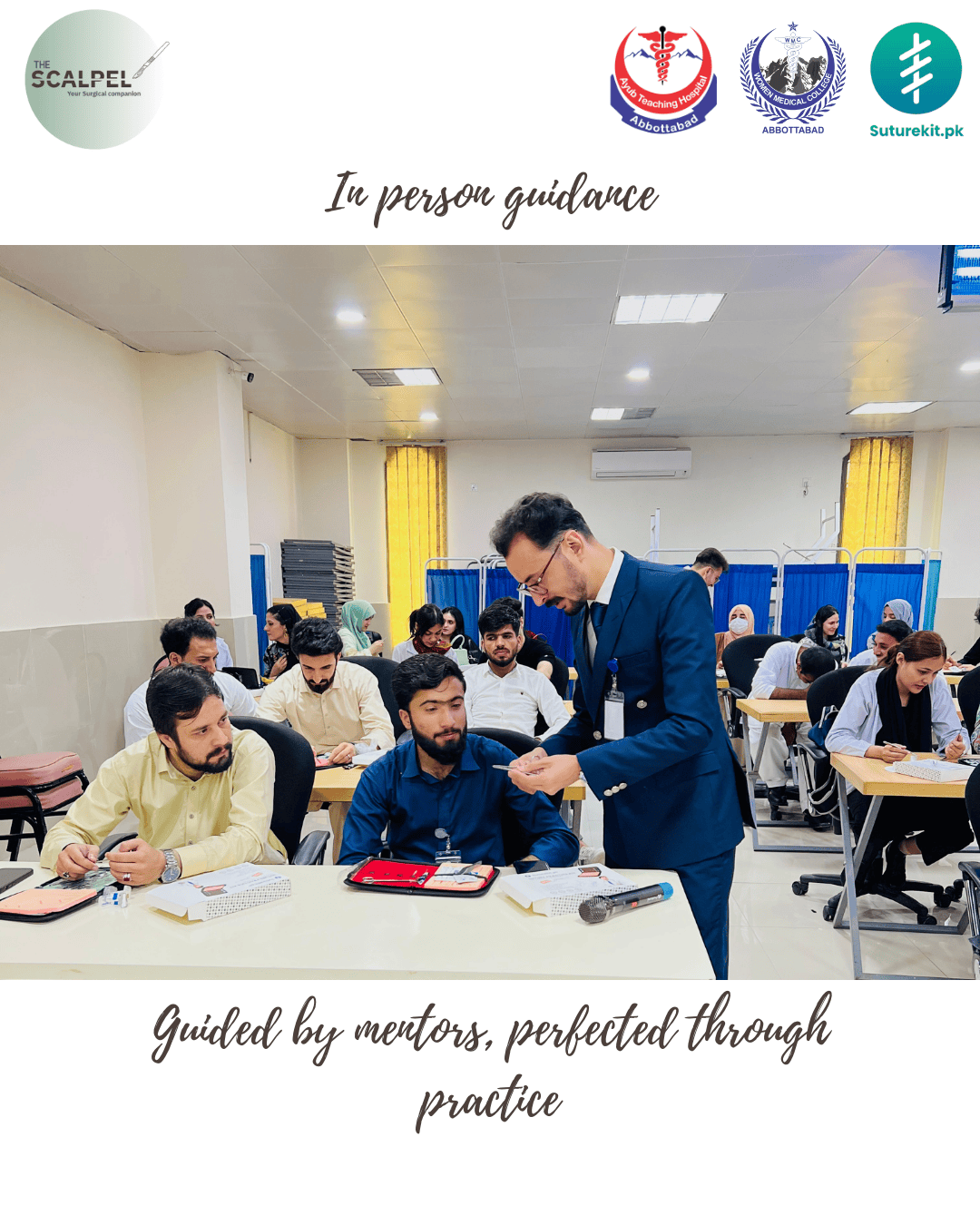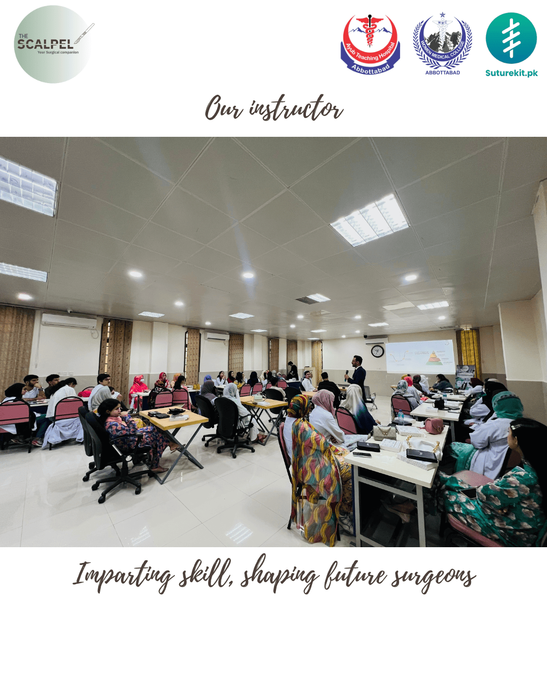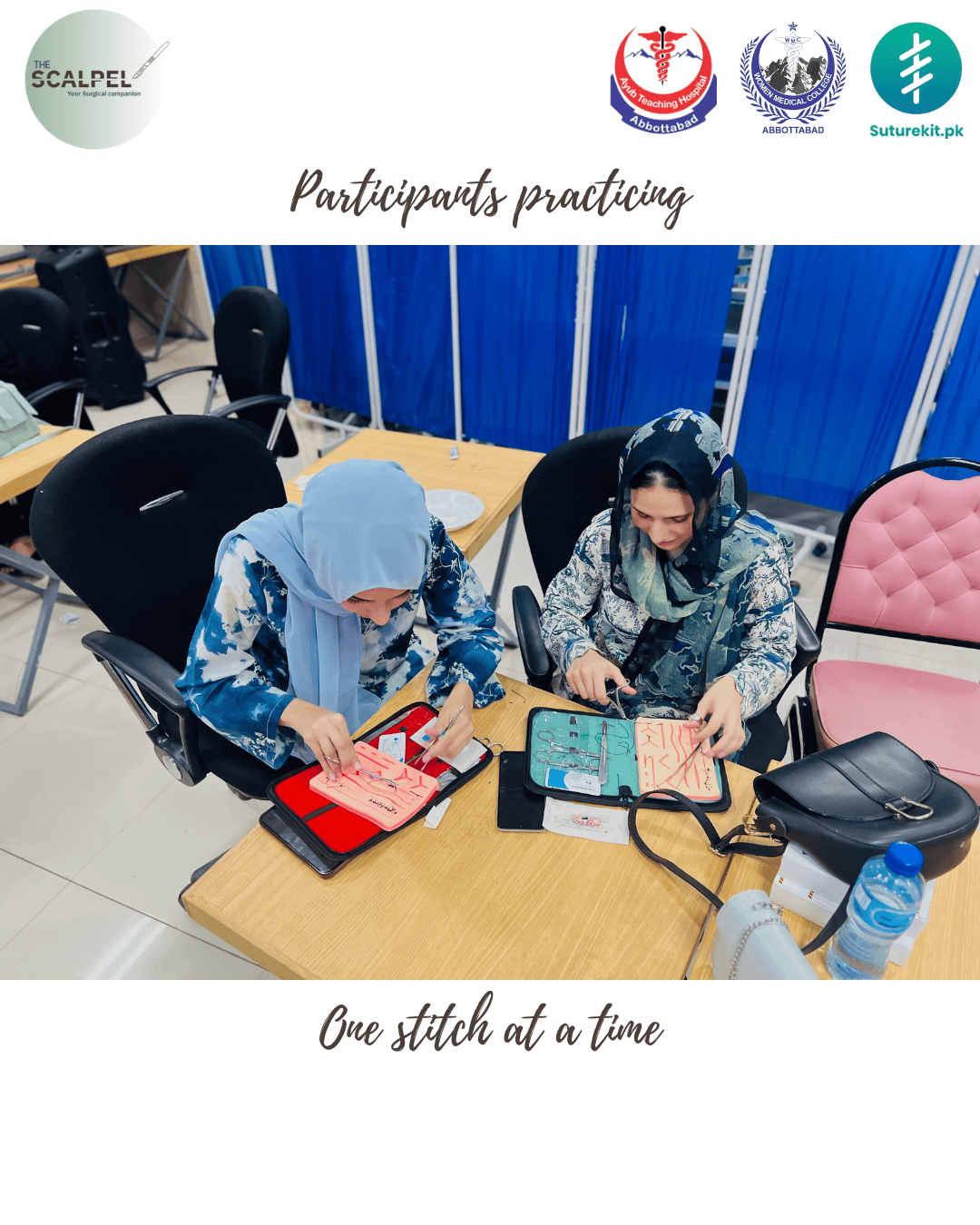 Mastering the Art of Surgery: A Hands-on Suturing Workshop for Aspiring Surgeons, organized by Scalpel, was a skill-based educational workshop focused on developing fundamental surgical suturing competencies. The session featured an overview and demonstration of commonly used sutures, needles, and instruments, followed by supervised hands-on practice. Participants actively performed various suturing techniques, including simple interrupted, continuous, and mattress sutures, using dedicated suturing kits. The workshop provided an engaging, practical learning environment that strengthened technical proficiency, precision, and confidence among aspiring surgeons.